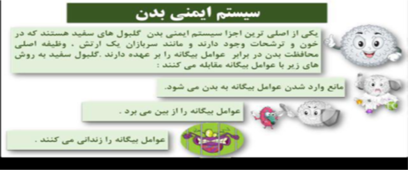 دربدن ما، سیستم ایمنی وجود دارد که وظیفه اش محافظت از بدن در برابر هر عامل بیگانه ایی است که وارد بدن انسان میشود. گلبولهای سفید یکی از اجزاء اصلی سیستم ایمنی بدن هستند.