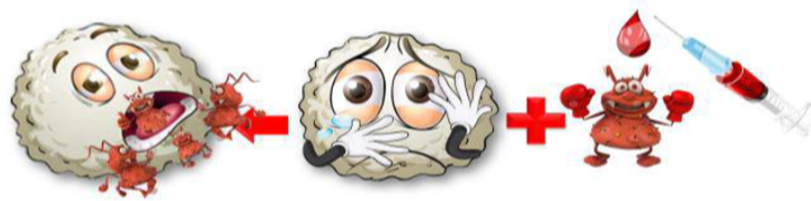 با افزایش ویروسها ،گلبولهای سفید مجبور می شوند همه توان خود را صرف تغذیه ویروس کرده و دیگر برای انجام وظایف خود رمقی ندارند. همانطور که اشاره شد وظیفه گلبولهای سفید، مقابله با میکروبها است. وقتی گلبول سفید رمق ندارد، اگر میکروب دیگری به بدن وارد گردد بدن قادر به هیچ عکس العملی نیست و آن میکروب میتواند انسان را از پا درآورد.