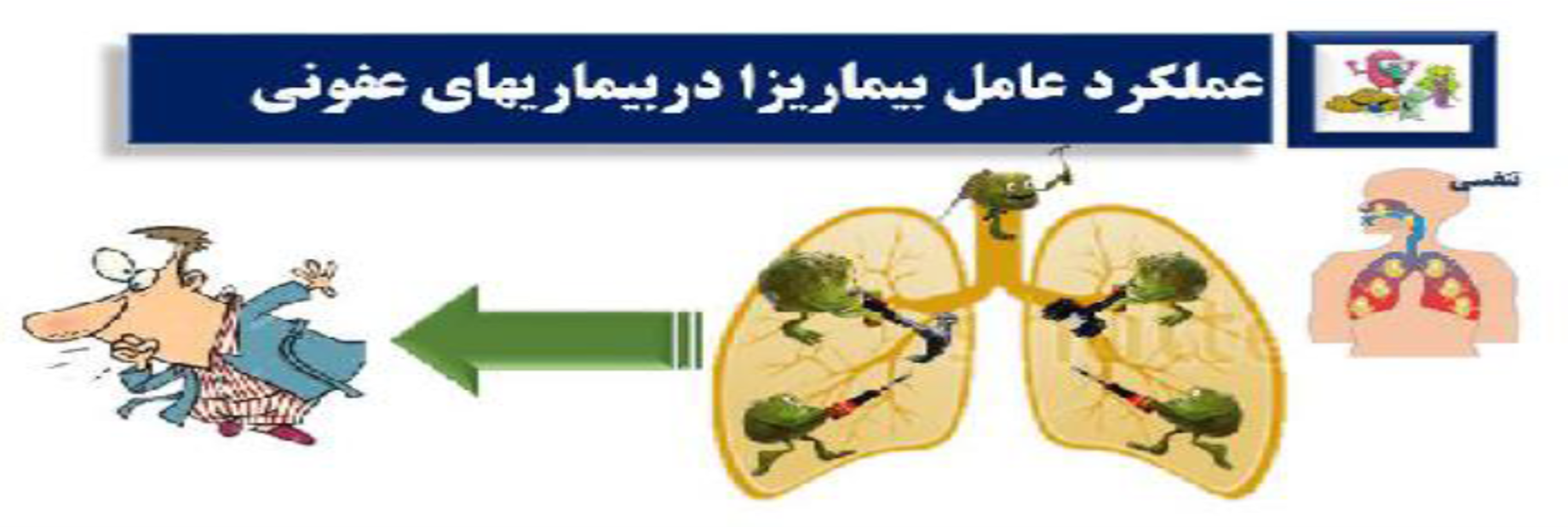 علائمی را ایجاد میکند که به کمک آن علائم میتوانیم بیماری را تشخیص دهیم. پس اگر بخواهیم هر بیماری عفونی را بشناسیم، باید بدانیم چه عاملی بیماری را ایجاد میکند، این عامل چگونه وارد بدن می شود و بعد از ورود به بدن چه اتفاقی میافتد.