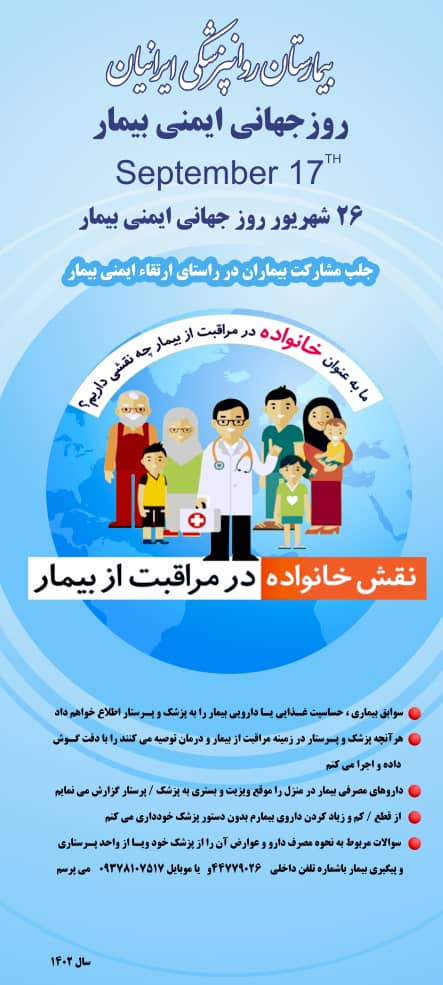 26 شهريور 1402 برابر با 17 سپتامبر 2023 ((روزجهاني ايمني بيمار))