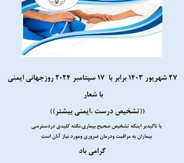 روز جهانی ایمنی 140327 شهريور 1403 برابر با 17 سپتامبر 2024 روز جهاني ...Negaheno27 شهریور 1403648 نفرمشاهده مطلب